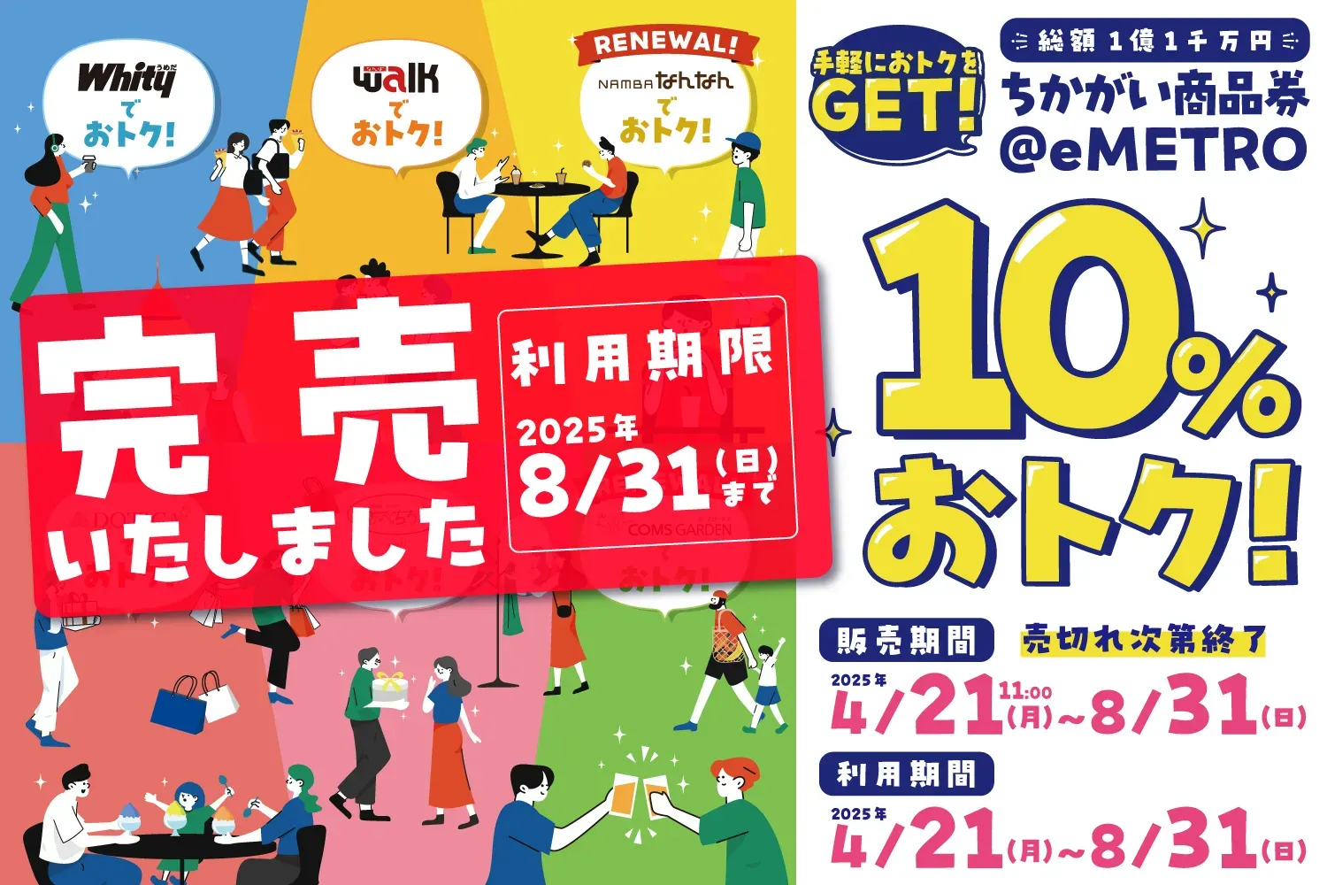 附有10%溢價的“近日商品券@eMETRO”於2025年5月28日(星期三)AM7:00,購買金額達到發行總額1億1千萬日圓,售罄。